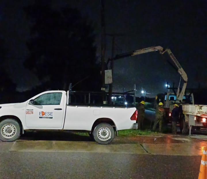 La guardia de la empresa de distribución de energía volvía de realizar tareas en Los Romanos cuando encontró en la Ruta 1, a la altura de Sauce Bajada una línea pre ensamblada de baja tensión en el piso y varios postes cortados que arrastraron pilares de medición.