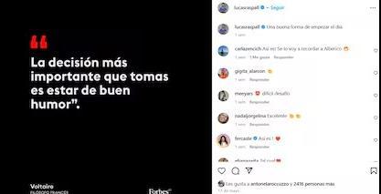 "La decisión más importante que tomas es estar de buen humor", se lee en el posteo donde la rosarina incluyo un corazón para avalar dicho concepto.