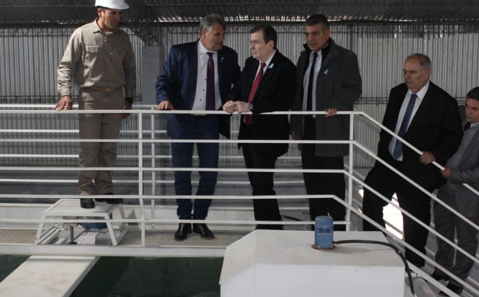 Luego, la comitiva oficial se trasladó al predio de la planta potabilizadora, donde se realizó el corte de cintas junto con el ministro de Obras Públicas, Aldo Hid; el secretario de dicha cartera, Jorge Zuaín; el subsecretario del Agua, Sergio Zaltz, el director de Obras Sanitarias, Guillermo Rivero; el titular de Recursos Hídricos, Alfredo Montero, entre otras autoridades.