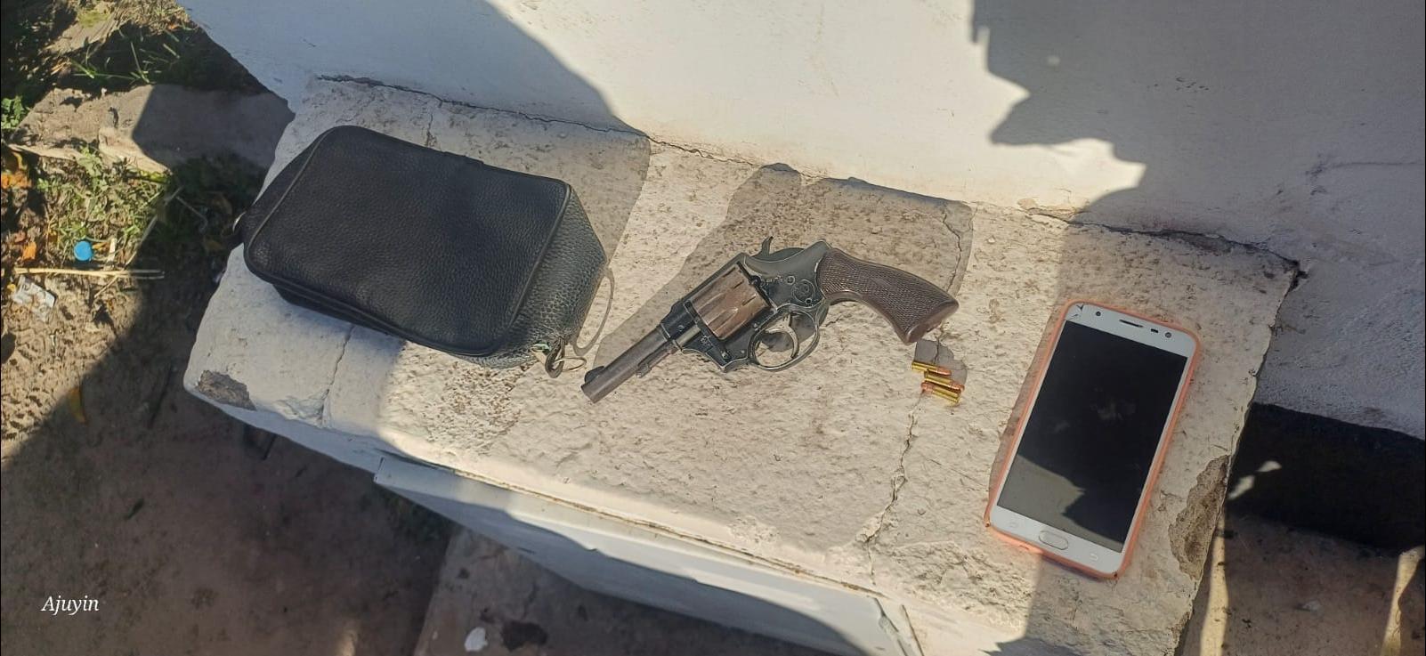 Uno de ellos transportaba un bolso tipo morral negro en el que ocultaba un revólver calibre .22 corto, marca Detective, junto a tres proyectiles del mismo calibre. También se secuestraron dos teléfonos celulares, uno marca Samsung Galaxy J7 con funda salmón, y otro Motorola E14 con funda transparente.