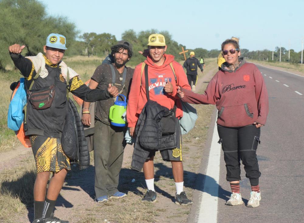 La ruta Nacional 34, principalmente, es la más concurrida. Grupos que caminan en grupos. Otros peregrinos lo hacen, solitarios, cubiertos con banderas alusivas. Hay fieles que en medio del camino frenan y forman rondas para unirse en la oración.