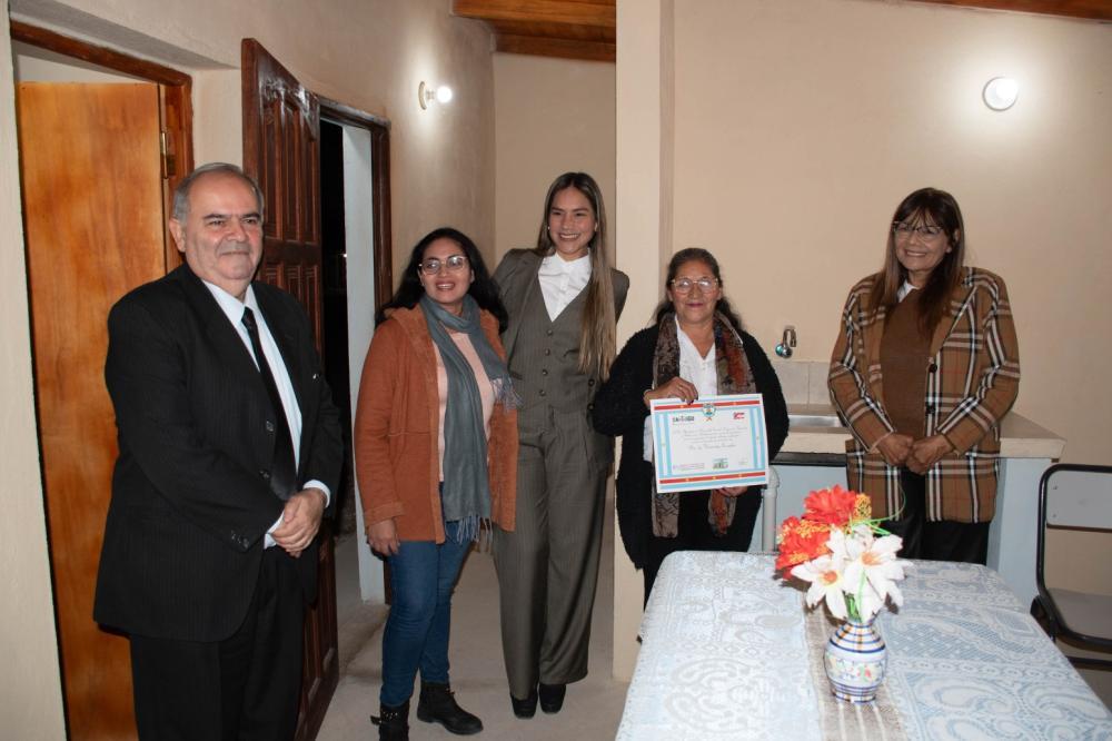 El corte de cintas desde donde se oficializó la habilitación y entrega de las viviendas sociales construidas por la Comisión Municipal de Villa Figueroa con fondos del Gobierno de la provincia, se efectuó en el domicilio de María Rosa Farías, en el paraje La Candelaria.