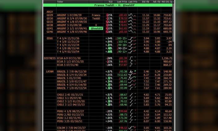 El ministro de Economía posteó sobre una imagen que mostraba la caída de los títulos soberanos.