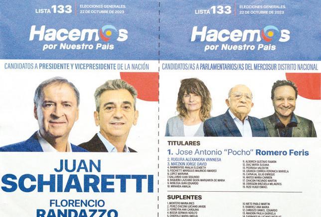 Como se recordará, son cinco las fórmulas a presidente y vicepresidente que participarán en las Generales, con sus respectivas listas de candidatos a parlamentarios del Mercosur distrito único (nacional). Los binomios son: Sergio Massa-Agustín Rossi (Unión por la Patria); Javier Milei-Victoria Villarruel (La Libertad Avanza); Patricia Bullrich-Luis Petri (Juntos por el Cambio); Juan Schiaretti- Florencio Randazzo (Hacemos por Nuestro País); y Myriam Bregman-Nicolás del Caño (Frente de Izquierda y de los Trabajadores- Unidad).