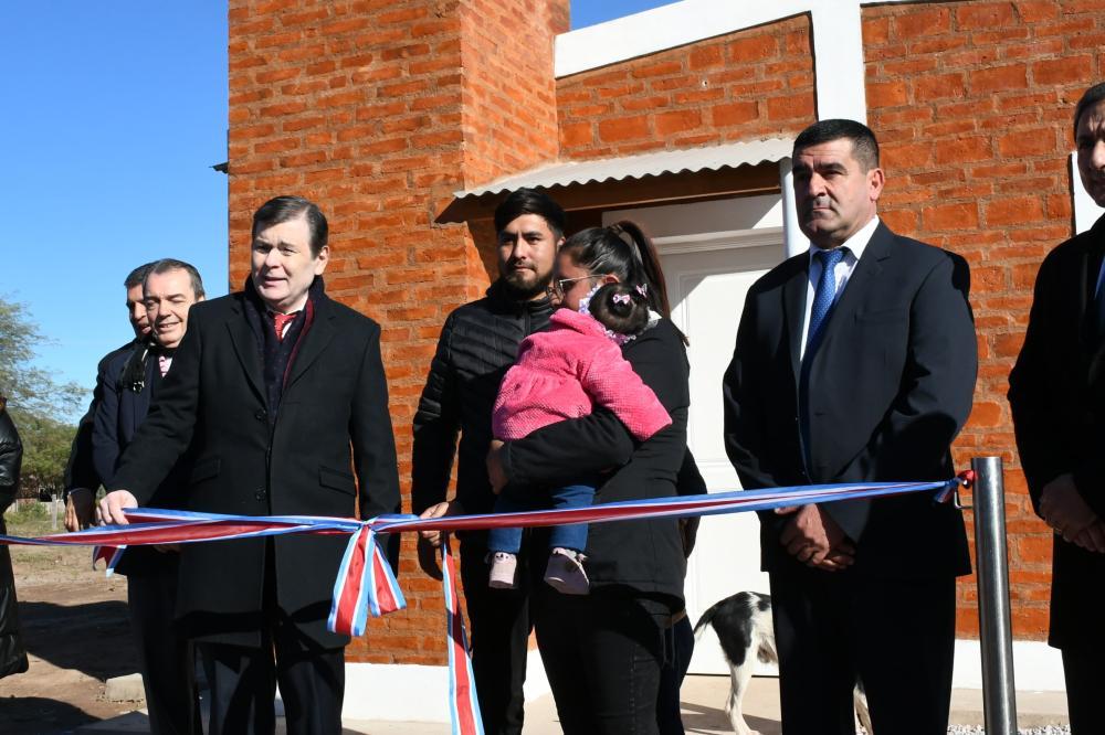 El primer corte de cintas se realizó en el domicilio de Brenda Pereyra y Maximiliano Paz, en el barrio Centro de Weisburd, donde también se hizo la entrega simbólica de llaves a la totalidad de los beneficiarios, distribuidos en los barrios Centro, Fortín, Bombonera, Nuevo, Estrella, Matadero y Sur de esta localidad, y en el paraje Floresta.