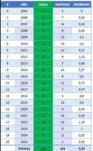 Desde 2006 hasta la actualidad, el astro rosarino ha marcado al menos un gol por año calendario con la Selección. El primero de sus 112 tantos lo anotó el 1° de marzo de 2006, en un amistoso ante Croacia en Basilea, que terminó con derrota por 3-2 para Argentina. Aquel partido, en la previa del Mundial de Alemania, terminó marcando un punto de inflexión para el equipo nacional y el inicio de la era Messi con la celeste y blanca.