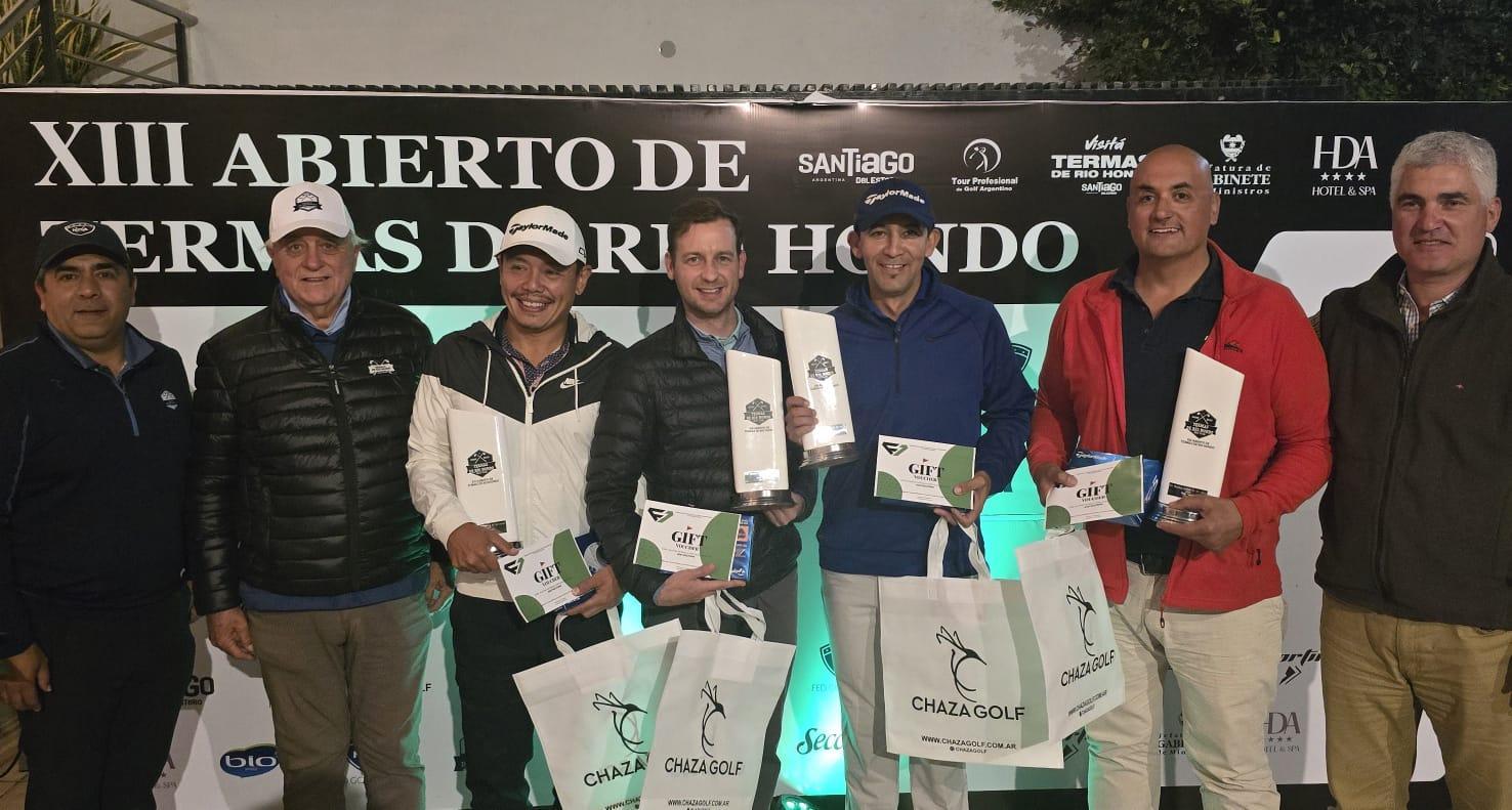 La quinta fecha del Tour Profesional de Golf Argentino dará inicio hoy en el Termas de Río Hondo Golf Club con los primeros 18 hoyos del certamen previsto a 72. En tanto que ayer en el tradicional Pro-Am, con equipos conformados por un golfista profesional y tres aficionados, el equipo integrado por Luis Argiró (profesional), Vivaldo Tincani, Luis Liu y Manuel Seibert (amateurs) se consagró en el primer lugar con un total de 57 golpes (-16). Segundo terminaron Andrés Gallegos (profesional) junto a Francisco Landívar, Soledad Molinuevo y Carlos Peralta (amateurs), con 58 golpes. La ceremonia de entrega de premios estuvo encabezada por el capitán y director del club, Juan Manuel Pereyra; el director deportivo, Iván Olmedo, y el presidente de la Federación del NOA Golf, Francisco Land