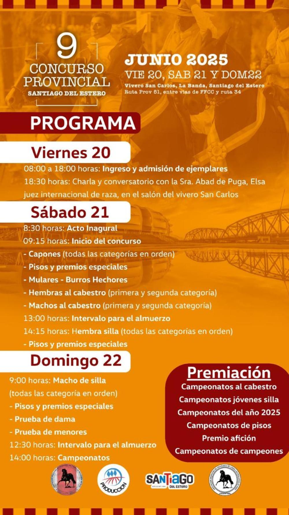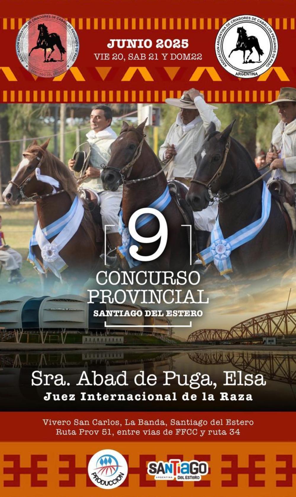 La ciudad de La Banda se prepara para recibir el 9° Concurso Provincial de Caballos de Raza Peruano de Paso, que se desarrollará del viernes 20 al domingo 22 de junio en el Vivero San Carlos, ubicado sobre la Ruta Provincial 51, entre las vías del ferrocarril y la ruta 34.