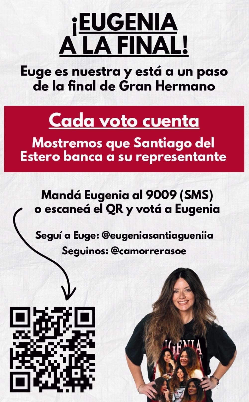 Con el objetivo de intensificar el apoyo, familiares, amistades y fans de Eugenia buscan generar un gran empuje en las votaciones, apelando al sentido de pertenencia y el orgullo local.