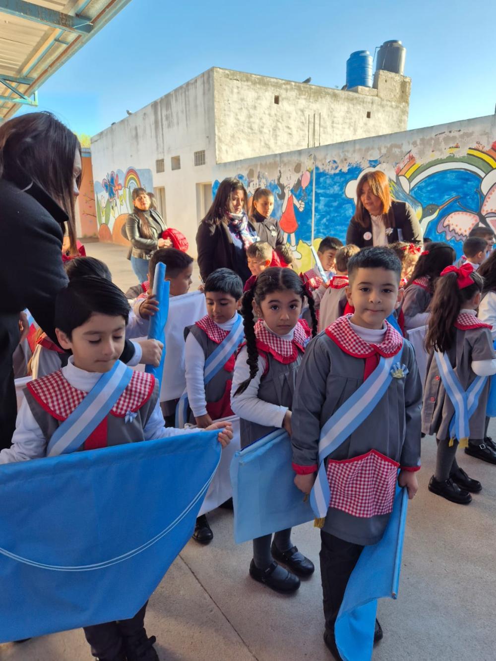 "La enseña nos unifica y nos representa a todos, démosle un significado, levantémosla con orgullo y con patriotismo", añadieron, al referirse al mensaje central que quisieron transmitir a los niños en esta fecha tan importante.