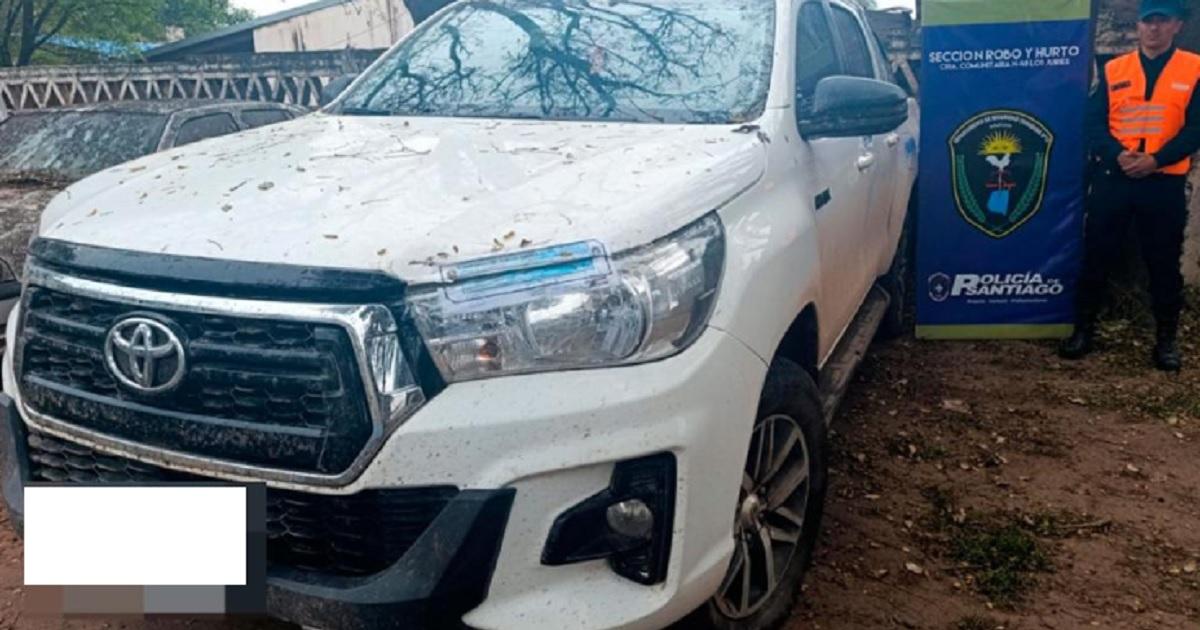 El sujeto se desplazaba a bordo de una camioneta Toyota Hilux blanca, doble cabina, que tras ser verificada por personal de la División Planta Verificadora Policial, se determinó que registraba pedido de secuestro por robo desde el 08/10/2024, en la localidad de Quilmes, provincia de Buenos Aires.