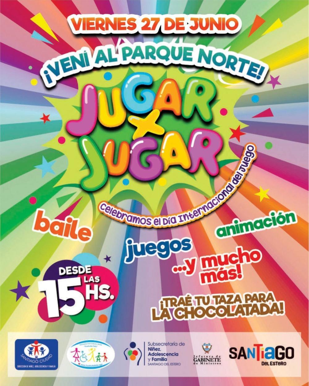Con el objetivo de celebrar el derecho al juego y promover su importancia en el desarrollo infantil, este viernes 27 de junio se llevará a cabo la jornada recreativa "Jugar por Jugar" en el Parque Norte, con entrada por calle Matienzo N° 1.255 de ciudad Capital.