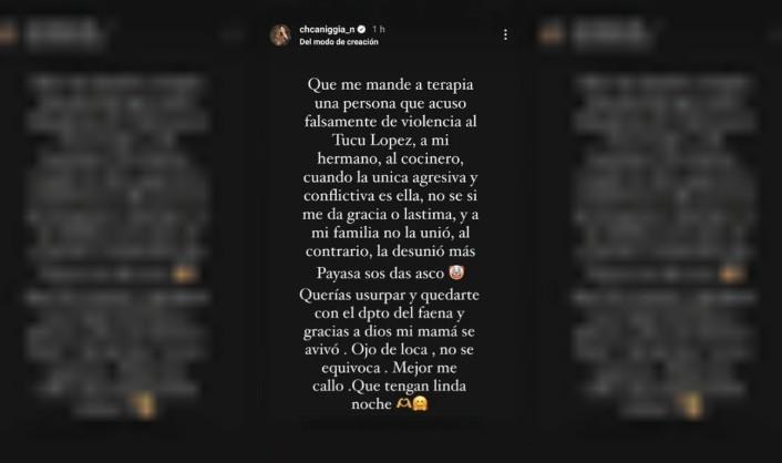 "Querías usurpar y quedarte con el depto del Faena y gracias a dios mi mamá se avivó. Ojo de loca, no se equivoca. Mejor me callo. Que tengan una linda noche", cerró.