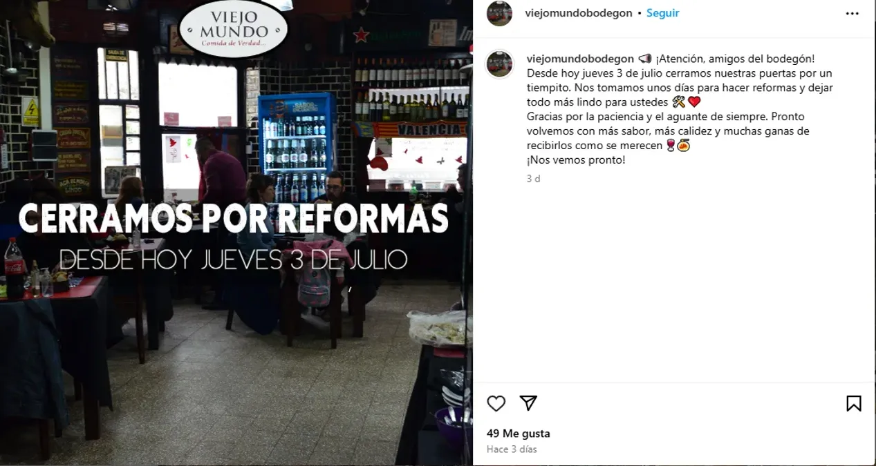 En los mensajes, el bodegón agradeció la paciencia de los clientes y prometió volver pronto con "más sabor, más calidez y muchas ganas de recibirlos como se merecen".