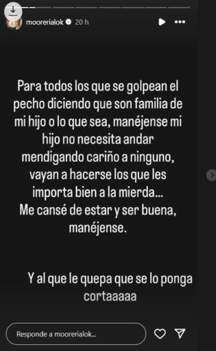 Sin embargo, luego subió un descargo apuntando contra alguien a quien no identificó, pero que podría tratarse de su entorno familiar.