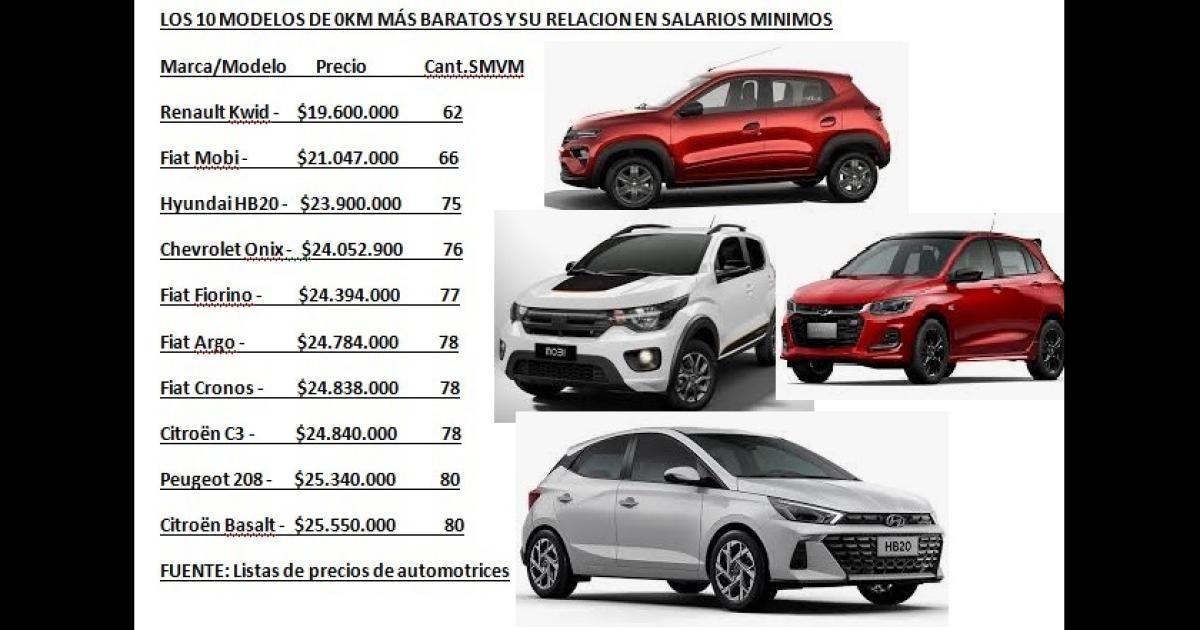 Para comprar los 0km más baratos se necesitan entre 62 y 80 salarios mínimos Para comprar los 0km más baratos se necesitan entre 62 y 80 salarios mínimos