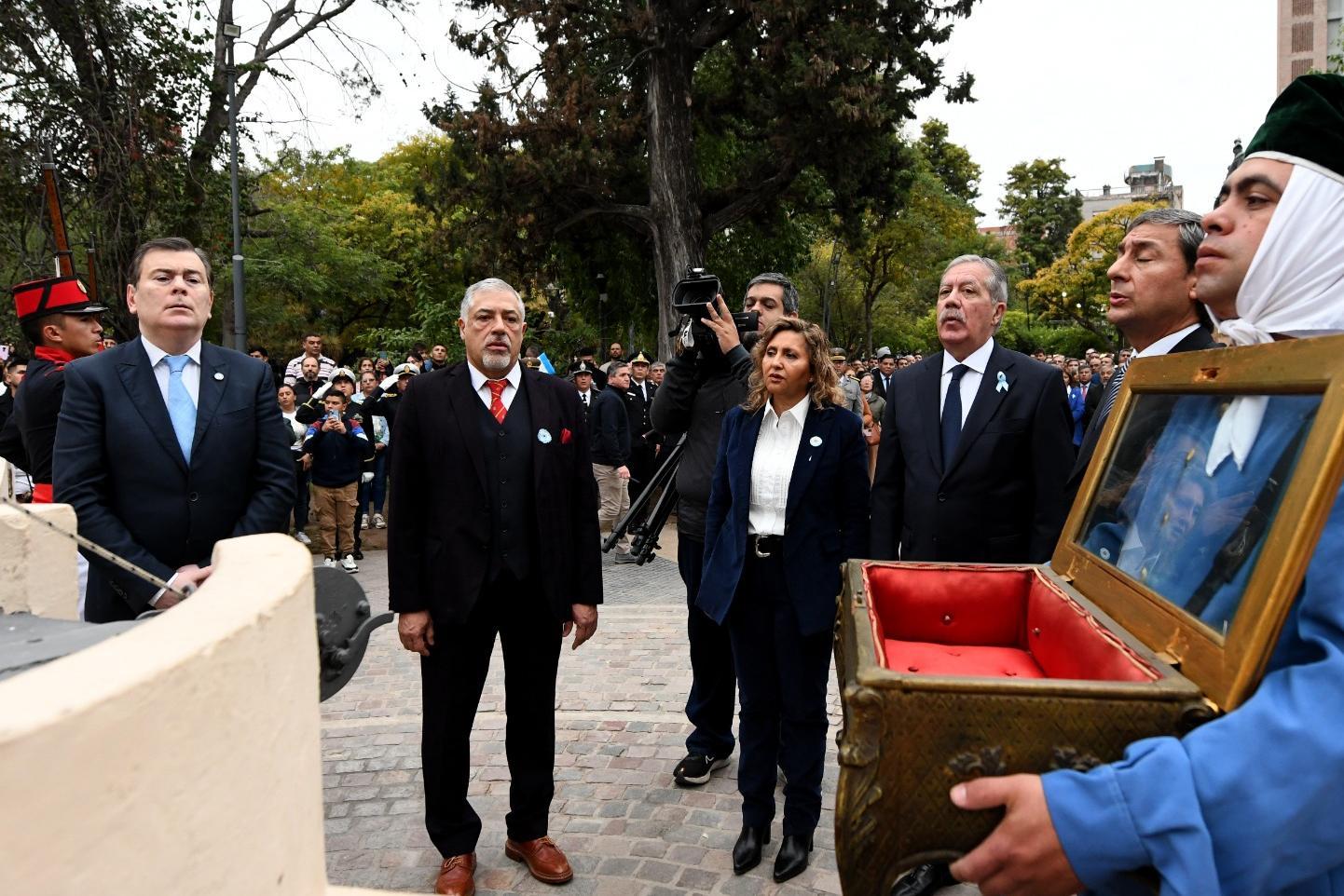 Las actividades comenzaron con el izamiento de la Bandera Nacional, junto con el vicegobernador Carlos Silva Neder; el jefe de Gabinete, Elías Suárez; la intendente de la Capital, Norma Fuentes, y el presidente del Superior Tribunal de Justicia, Federico López Alzogaray.