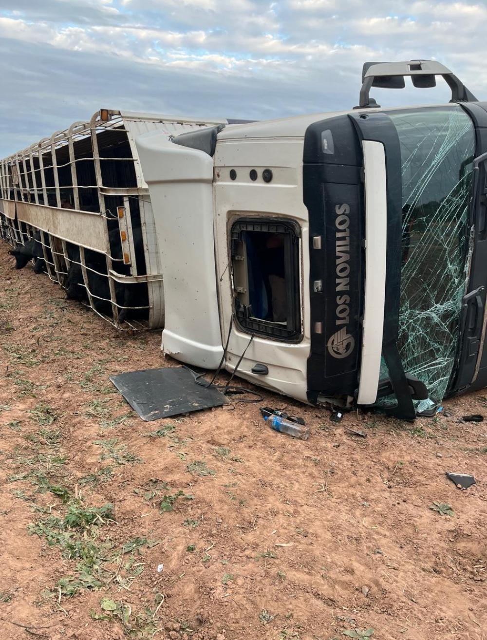 FOTOS. Violento vuelco de un camión sobre Ruta 16: transportaba más de 50 animales FOTOS. Violento vuelco de un camión sobre Ruta 16: transportaba más de 50 animales