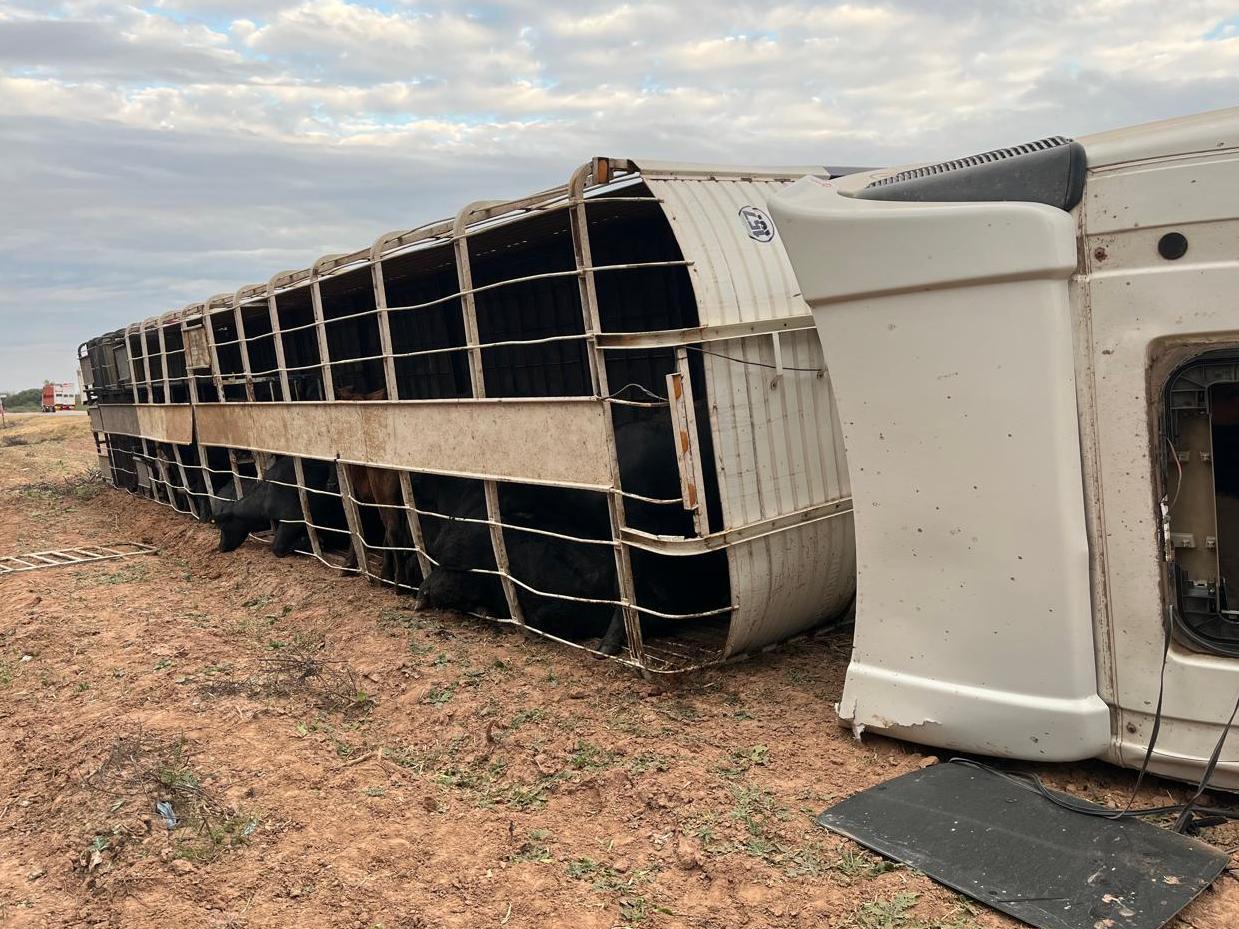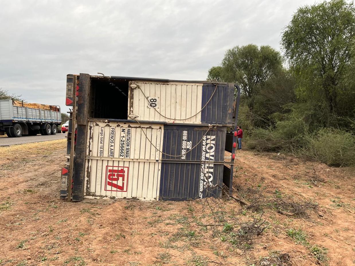 El hecho ocurrió alrededor de las 17:15, cuando un camión jaula doble, marca Volvo color blanco, modelo FH460 tipo tractor, volcó sobre su lateral derecho quedando debajo de la banquina. El vehículo transportaba 53 animales vacunos (novillos) desde La Sabana (Chaco) con destino a Embarcación (Salta).