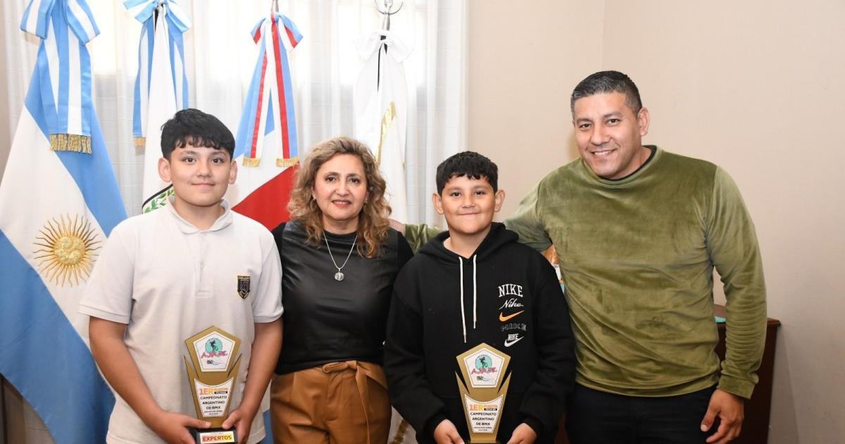 La intendente de la Capital, Ing. Norma Fuentes, recibió la visita de los hermanos ciclistas Pablo y Valentino Luna, quienes obtuvieron el primer puesto en la tercera fecha del Campeonato Argentino de BMX.