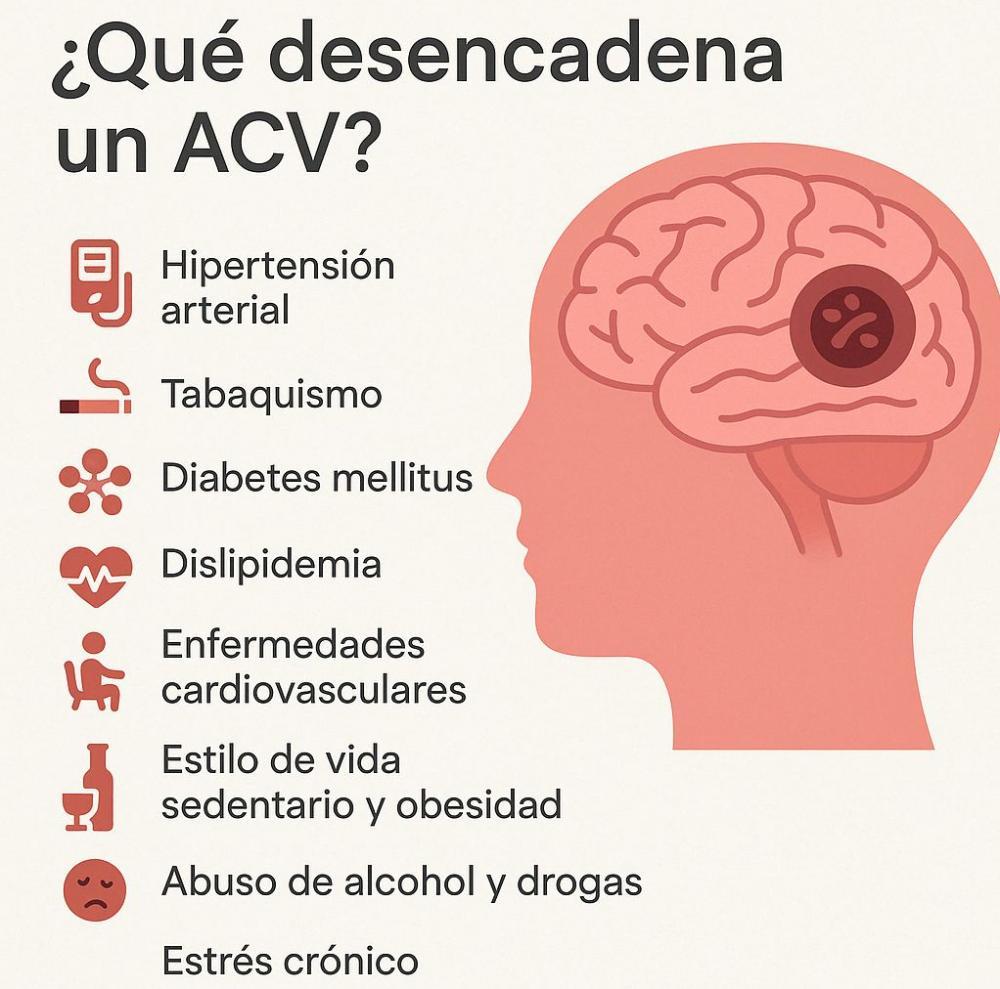 También enumeró como posibles causas, "alteraciones genéticas tendientes a formar coágulos en los vasos, predisposición familiar, alteraciones cardíacas no detectables hasta el cuadro de ACV, malformaciones vasculares que se tienen desde etapas iniciales de la vida, y que permanecieron silenciosas, son solo algunos de los factores a investigar, cuando no se evidencian aquellos más comunes", precisó Jacobo.