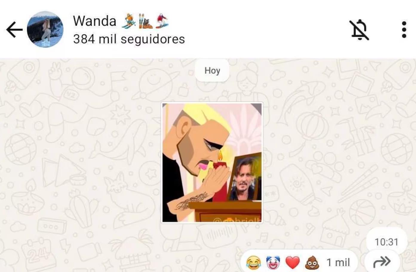 En medio de sus mensajes de cariño para sus seguidores, Wanda les mandó uno de los stickers que tiene guardados entre sus favoritos: se trata de una ilustración en la que Mauro está rezándole a Johnny Depp.