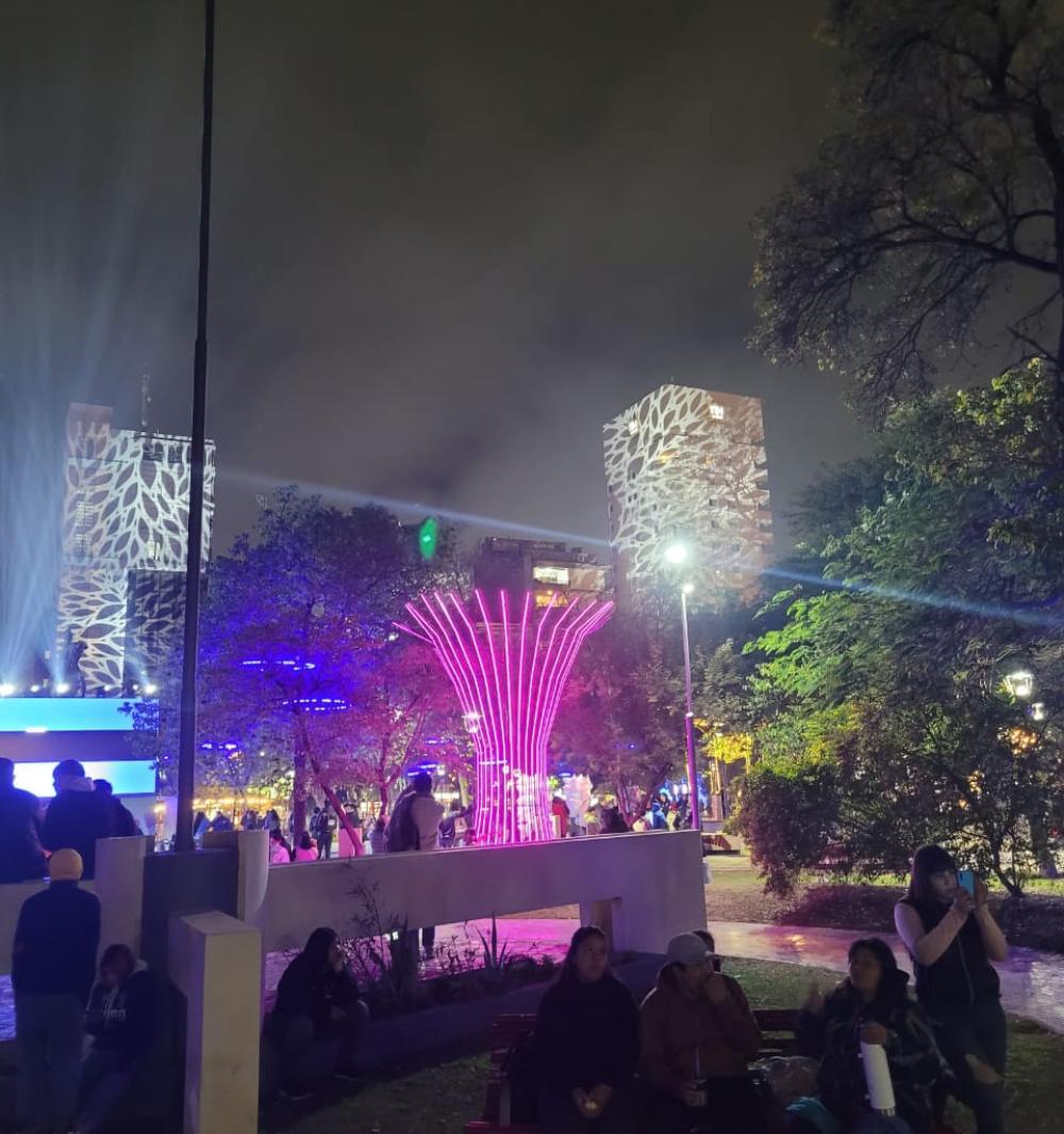 Este 24 de julio, la plaza se transformó en luces, decoración y una puesta en escena espectacular que marcaron el inicio de la cuenta regresiva. La ornamentación combinada con tradición y modernidad, y entre los árboles iluminados se captó el orgullo colectivo de un pueblo que nunca olvida sus raíces.
