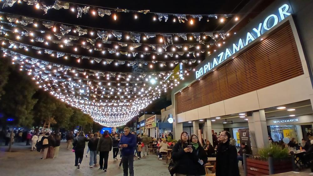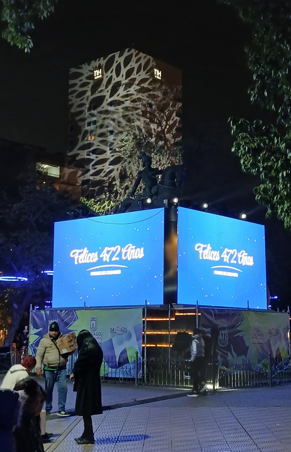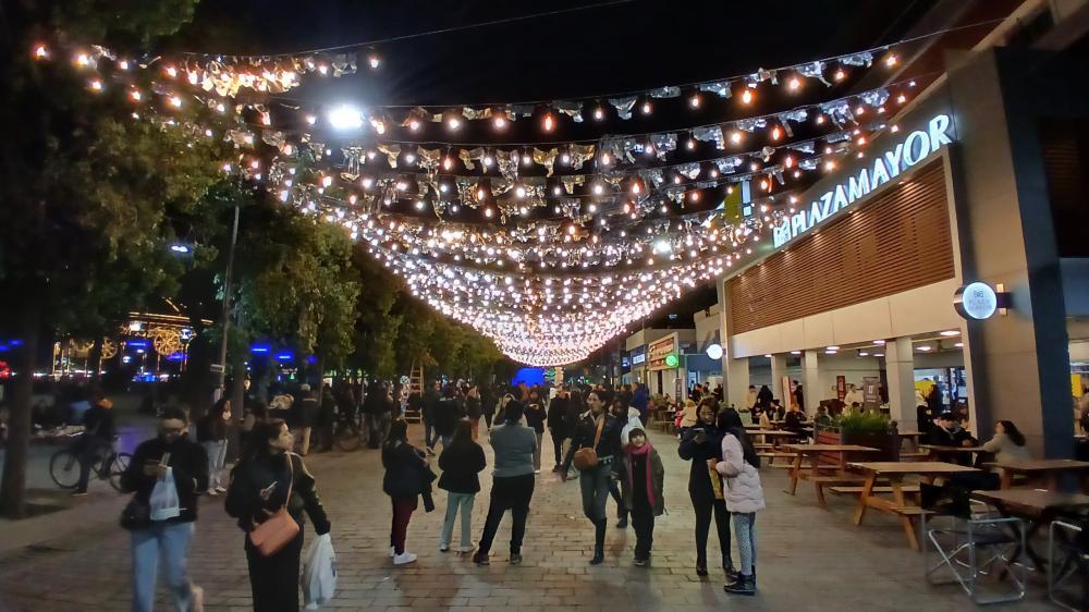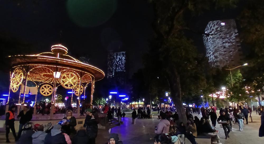 El principal atractivo de la ciudad brilla con miles de luces LED destacando la arquitectura de los principales edificios colindantes y monumentos emblemáticos, creando un ambiente mágico y festivo en esta noche fría.