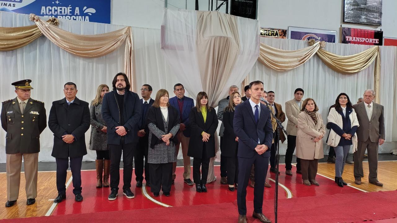 El acto protocolar se desarrolló en el Fernández Básquetbol Club. Si bien en un primer momento había sido programado para el Paseo del agro, debido a las inclemencias climáticas debió ser trasladado a este lugar.