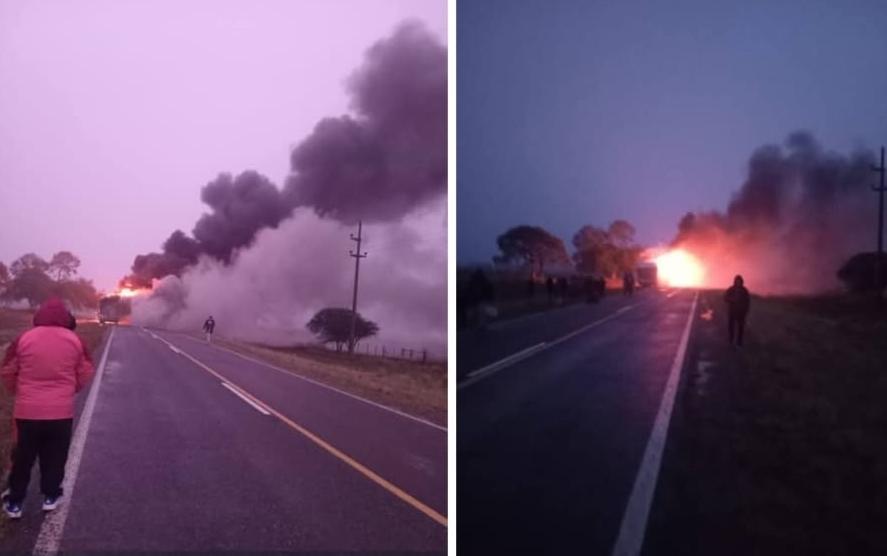Incendio destruye un colectivo y 35 pasajeros sufren una odisea, en ruta 64 Incendio destruye un colectivo y 35 pasajeros sufren una odisea, en ruta 64