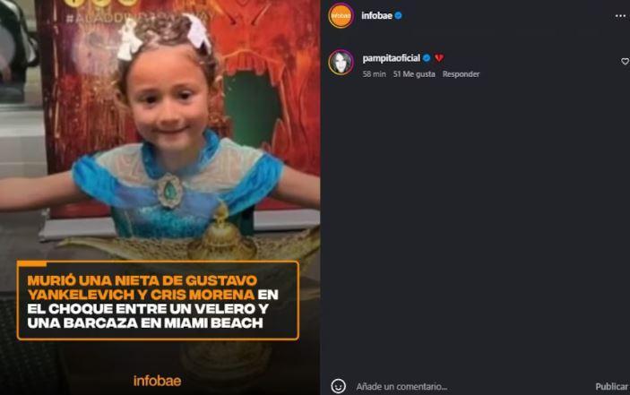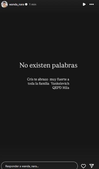 Wanda Nara también se sumó al acompañamiento colectivo: "No existen palabras. Cris, te abrazo muy fuerte. A toda la familia Yankelevich. QEPD Mila". La exmodelo y conductora Teresa Calandra simplemente escribió: "Dios mío, qué tragedia".