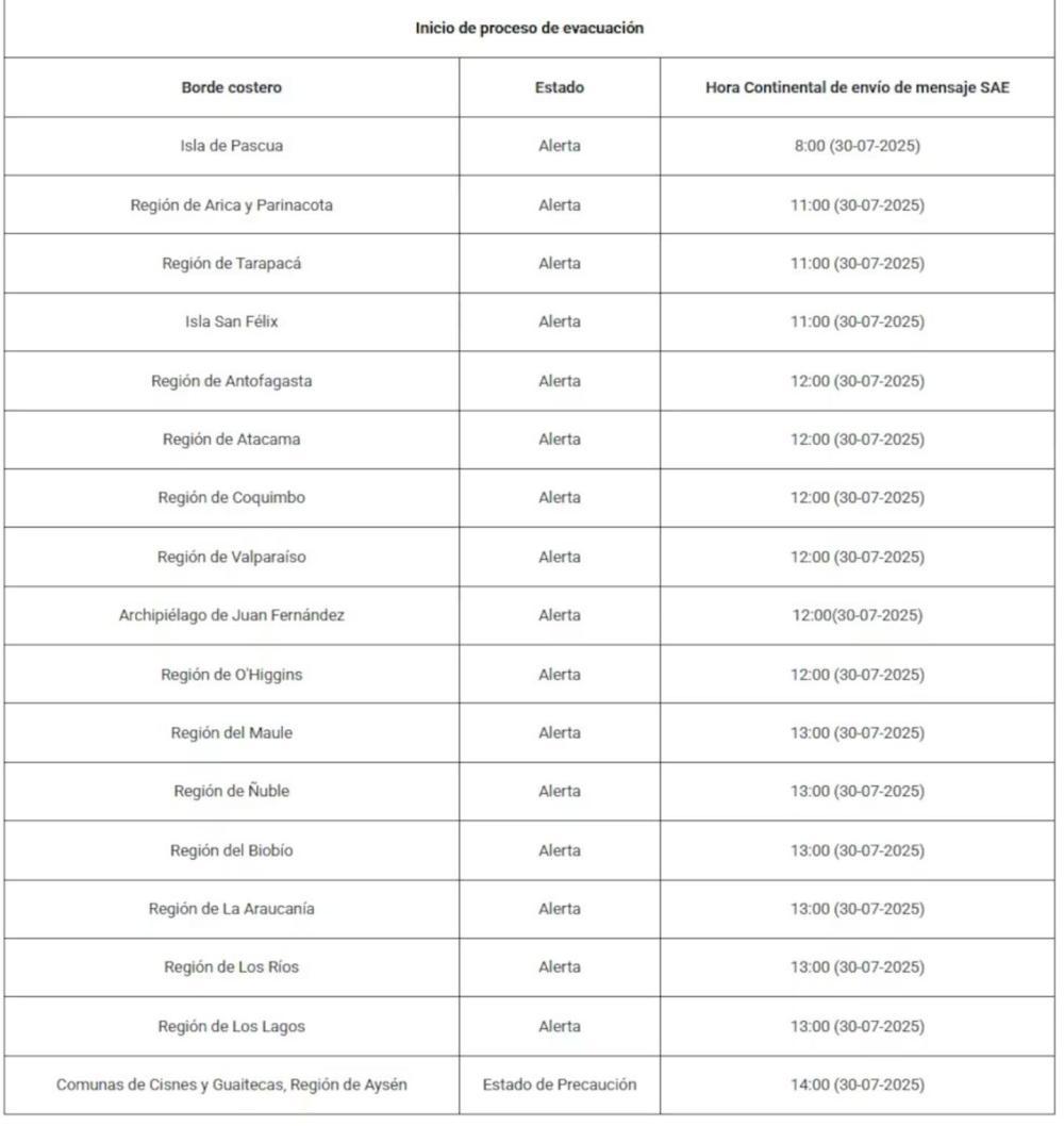 Chile enfrenta una situación crítica de alerta por tsunami, que rige desde la región de Arica y Parinacota hasta la región de Los Lagos. El ministro del Interior, Álvaro Elizalde, informó que se estima que 1.5 millones de personas han sido evacuadas como medida preventiva ante la inminente llegada de olas.