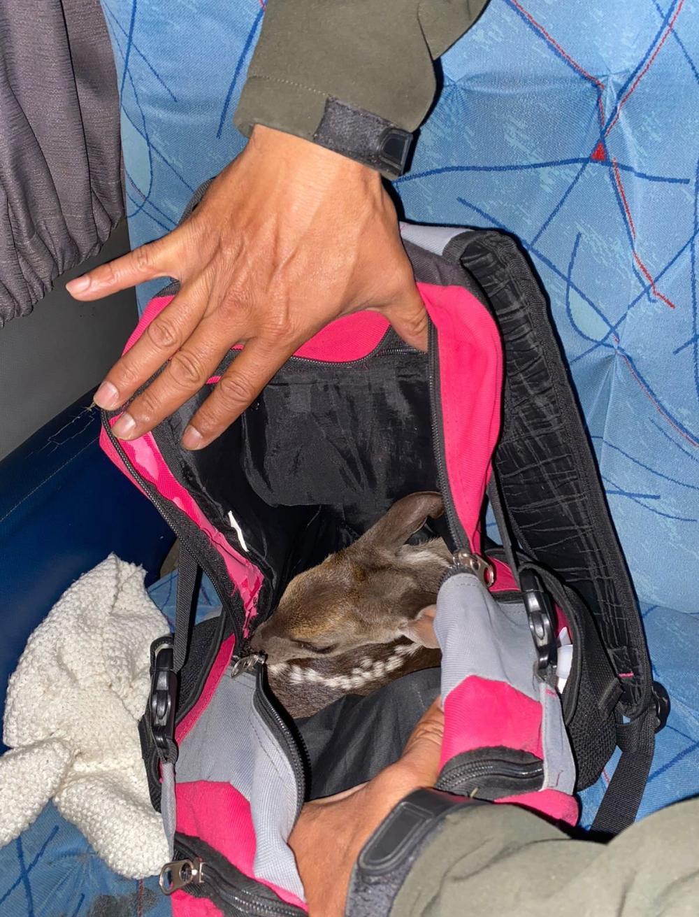 Al momento de llevar a cabo el registro en el interior del micro, los gendarmes notaron ciertos movimientos en la mochila de una ciudadana mayor de edad, lo que les llamó la atención. Inmediatamente, los uniformados abrieron el equipaje de mano y comprobaron que en el interior había oculto un ciervo de los pantanos, de pocos días de nacido.