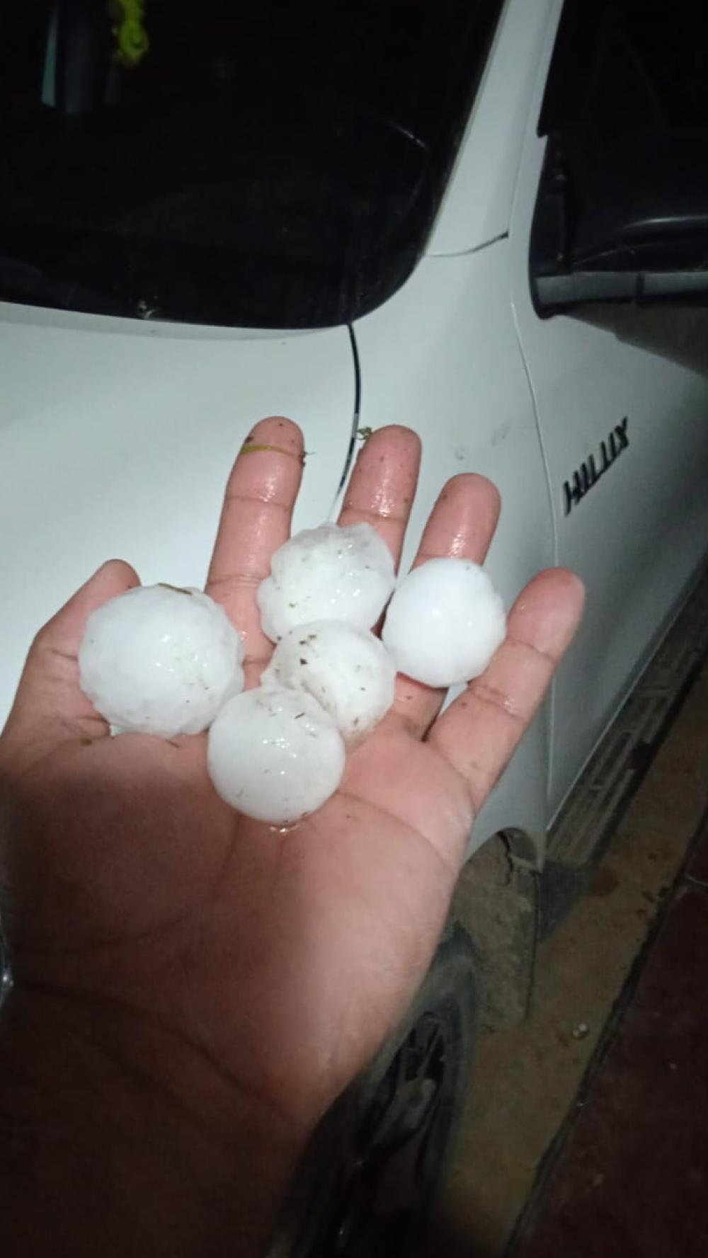 "El granizo era del tamaño de un huevo de gallina", describieron los pobladores de Los Juríes, donde las piedras impactaron con fuerza durante varios minutos. Fenómeno similar se reportó en parajes rurales aledaños y en el acceso a Cuatro Bocas, donde también se acumuló granizo en los caminos.