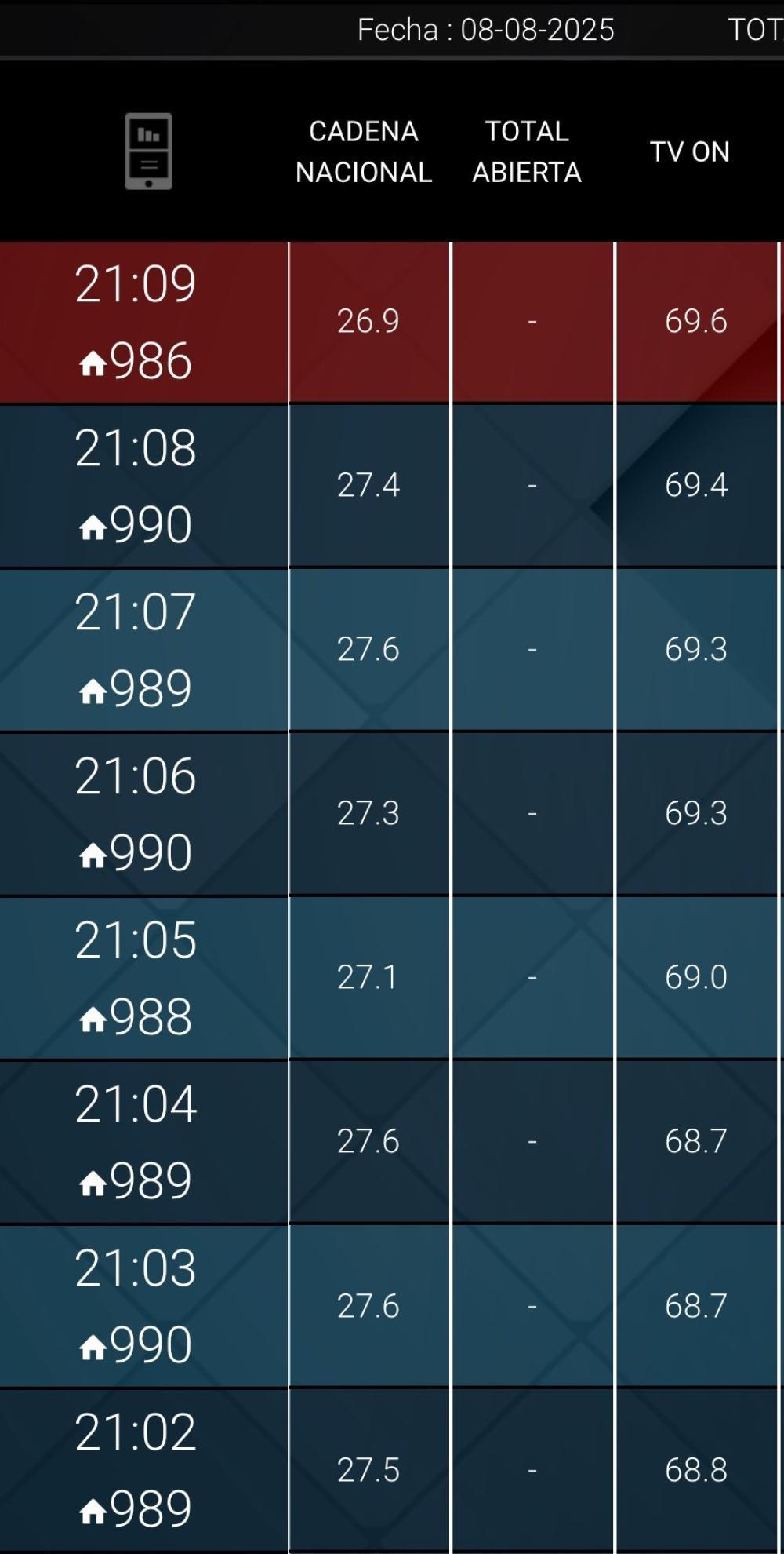 -Televisión (Share): El discurso alcanzó un pico de 35 puntos de share, es decir, un 35% del total de televisores encendidos, sumando las cifras de los cinco canales relevados por Kantar Ibope.