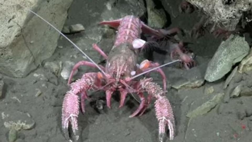 La curiosidad de los científicos era por el movimiento repentino que detectaron debajo de la roca. Inmediatamente, sobre la izquierda de la imagen una "mamá" langosta que posiblemente buscaba alimento volvió en sus pasos y retornó a la roca.