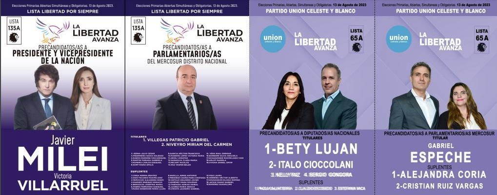Como se recordará, son cinco las fórmulas que competirán para suceder a Alberto Fernández y Cristina Kirchner: Sergio Massa-Agustín Rossi (Unión por la Patria); Javier Milei-Victoria Villarruel (La Libertad Avanza); Patricia Bullrich-Luis Petri (Juntos por el Cambio); Juan Schiaretti-Florencio Randazzo (Hacemos por Nuestro País); y Myriam Bregman-Nicolás del Caño (Frente de Izquierda y de los Trabajadores-Unidad).