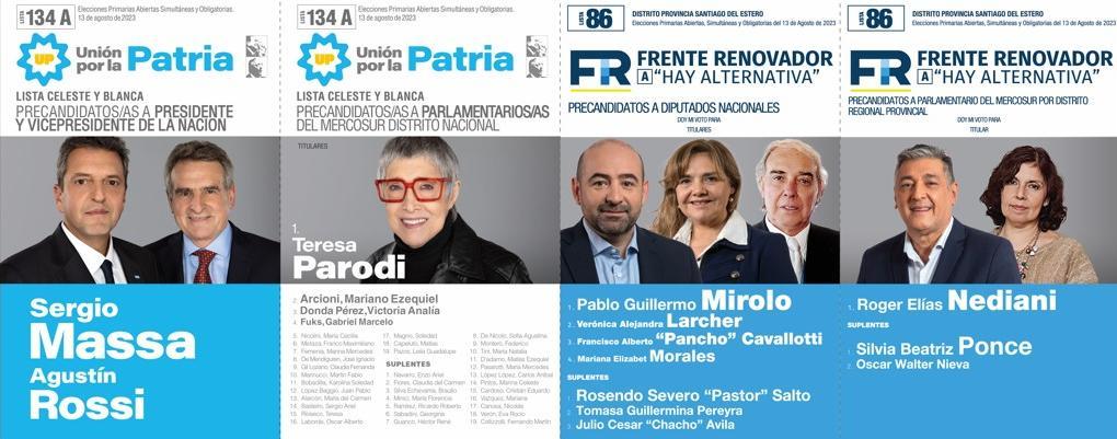 Tres serán largas, con cuatro categorías: presidente y vicepresidente; parlamentarios del Mercosur distrito único, diputados nacionales y parlamentario del Mercosur distrito Santiago del Estero. Las otras tres serán cortas debido a que sólo presentarán candidatos a presidente y vicepresidente, y a parlamentarios del Mercosur distrito único.