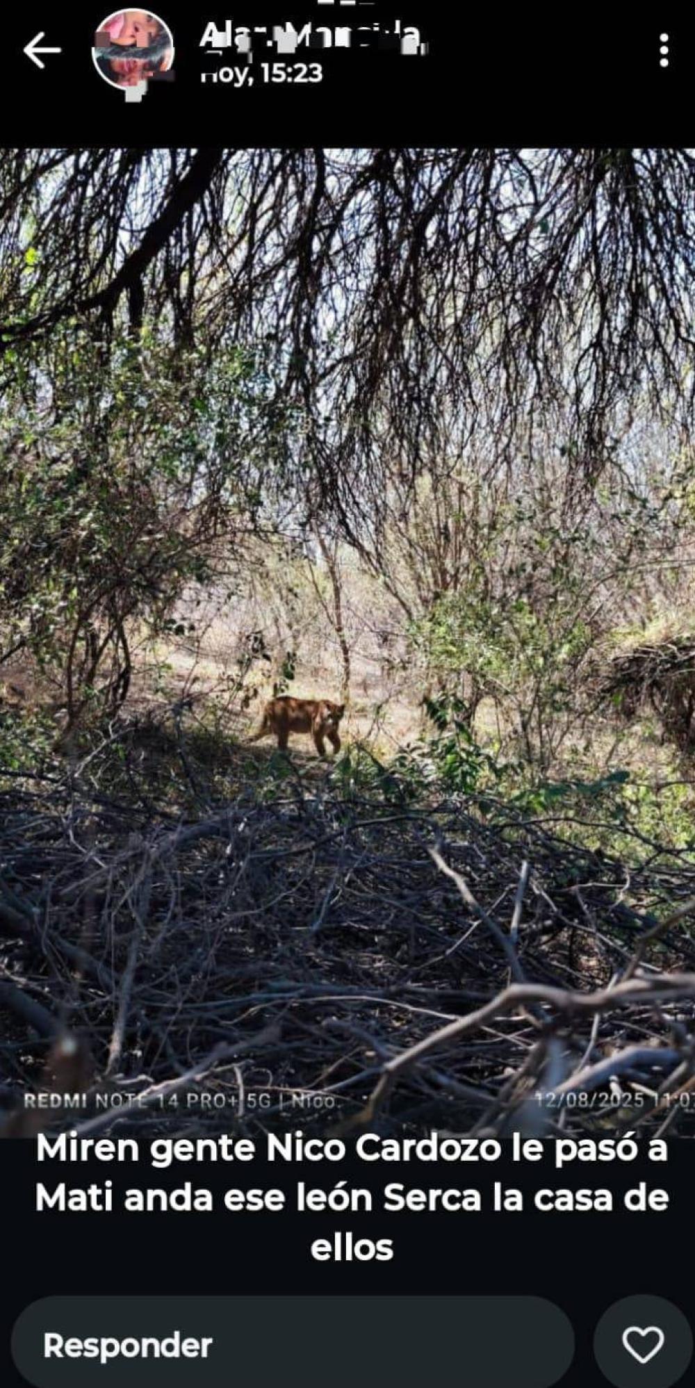 La aparición de un puma en el patio de una vivienda, ubicada en la zona rural de Monte Quemado, generó alarma entre los vecinos. El felino fue fotografiado por el propietario del inmueble, quien compartió las imágenes en redes sociales.