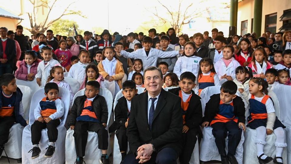 "Esto tiene que ver con lograr igualdad educativa agregó- para que todos tengan las mismas condiciones edilicias, pedagógicas, tecnológicas y de equipamiento educativo. Lo mismo ocurre con el programa de nutrición con alimentos proteicos para los niños que asisten al jardín, a la primaria y para jóvenes del secundario; la creación de jardines de infantes a lo largo y ancho de la provincia; la creación de agrupamientos en la ruralidad; miles de horas cátedras; algunos anexos como aquí en El Hoyón, donde hemos ido incorporando los primeros años y hemos llegado hasta cuarto año de la secundaria y vamos a tener el quinto año".