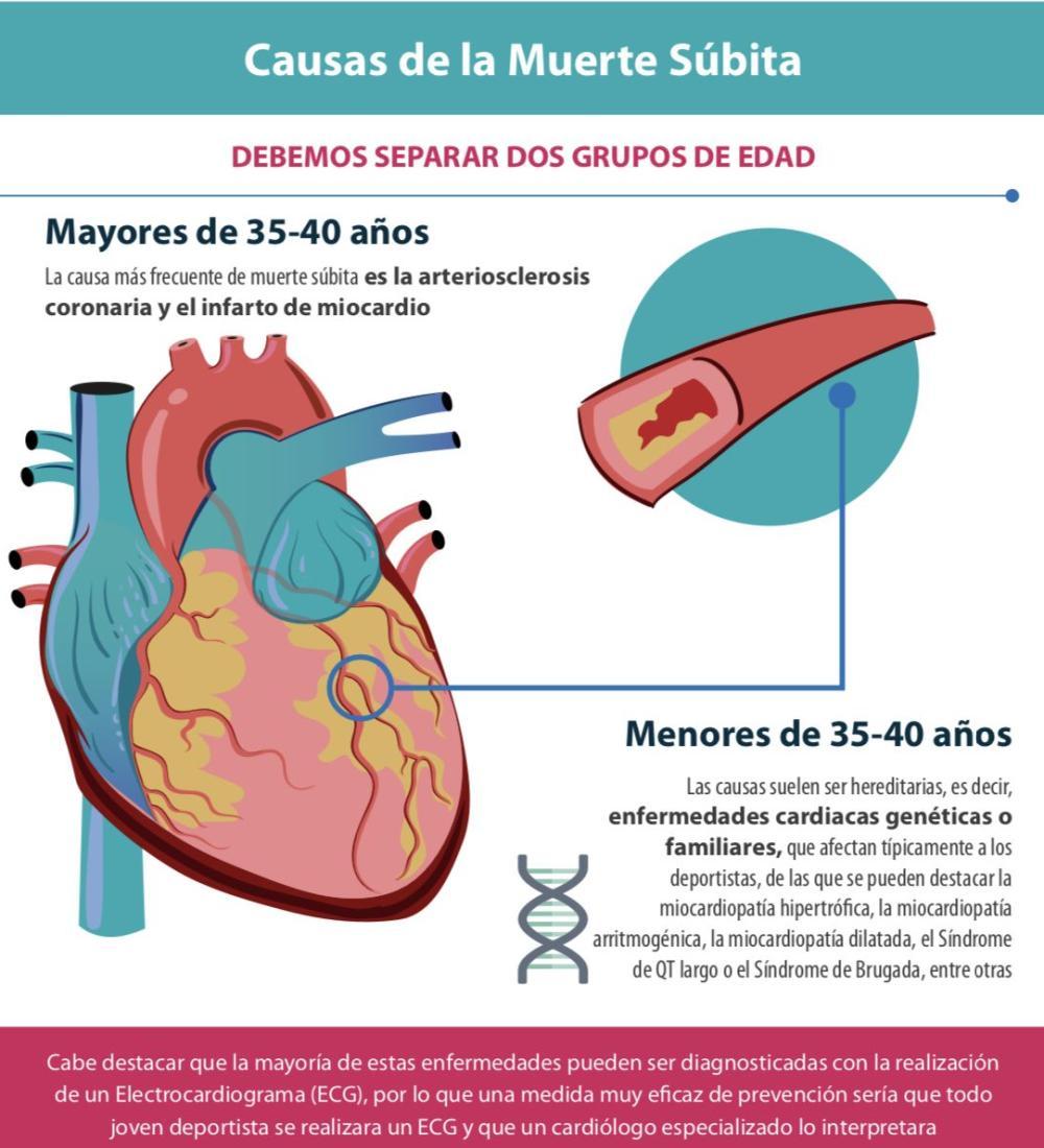 Según las organizaciones de profesionales de la cardiología, en personas adultas, alrededor del 80% de las muertes súbitas están vinculadas a enfermedades coronarias y a factores de riesgo no controlados como tabaquismo, hipertensión, diabetes y obesidad, mientras que en personas jóvenes, la causa más frecuente son las anomalías congénitas.