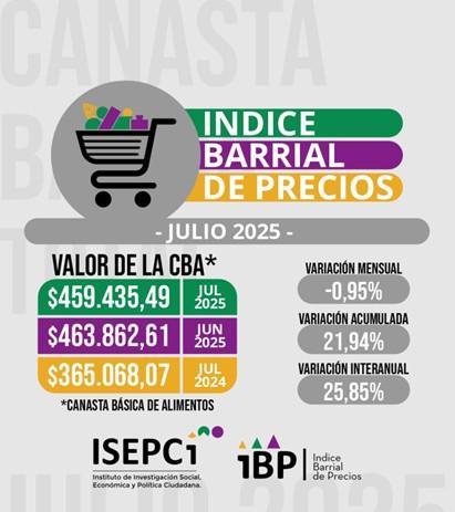 El Instituto de Investigación Social, Económica y Política Ciudadana (Isepci) emitió un informe sobre el costo de la canasta de alimentos en el periodo de julio 2025, en Santiago del Estero. Según informó, llegó a casi $460 mil. A continuación, el informe completo: