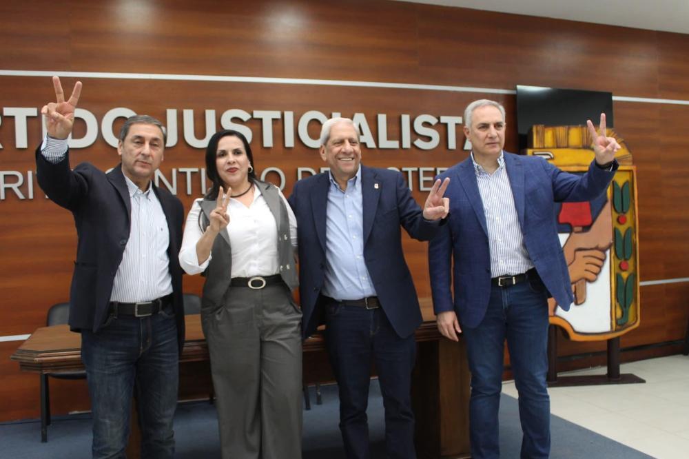 Por su parte, en un acto realizado en la sede central del PJ, Angélica Navarro, la otra candidata a intendente, se mostró con los referentes del partido.