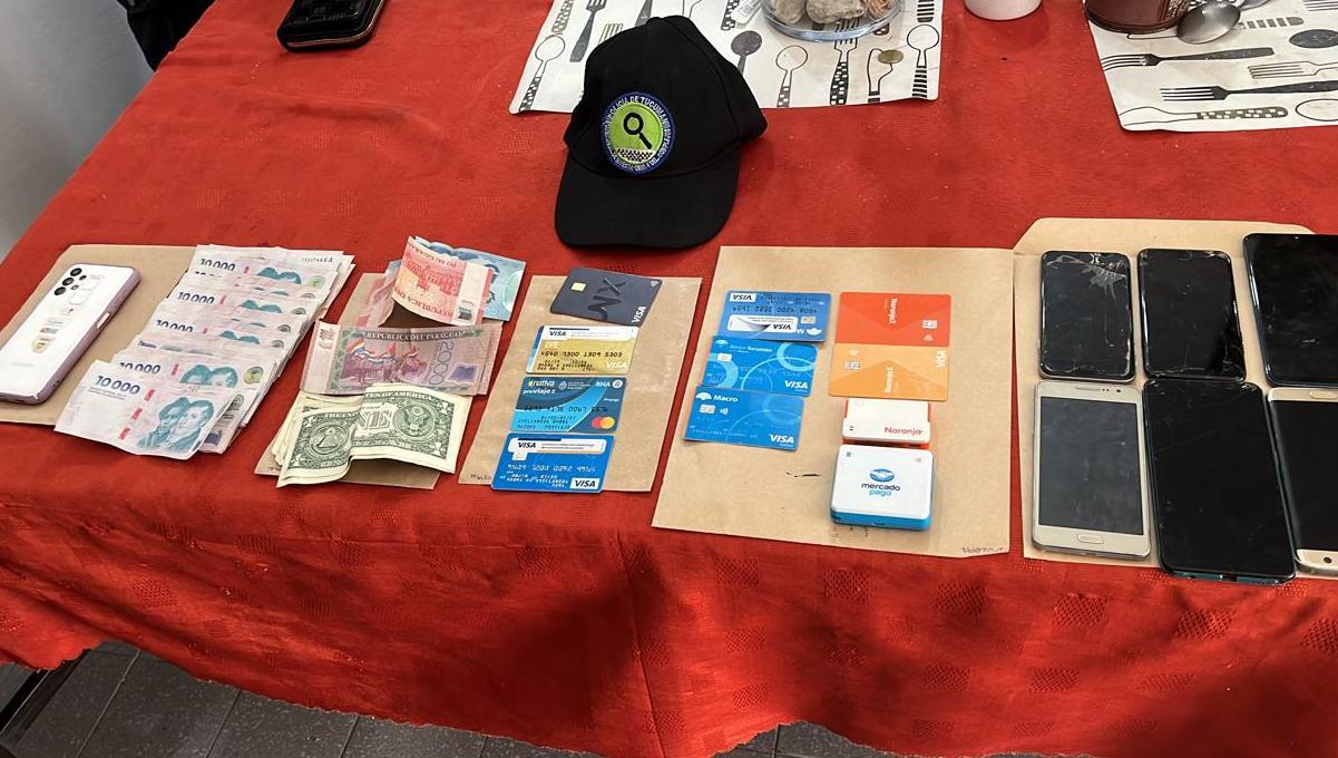 Le siguieron, $ 298.000, U$S 5, tarjetas de crédito, de débito, un posnet, celulares, chips, memorias, adaptadores USB, una notebook y un disco duro.