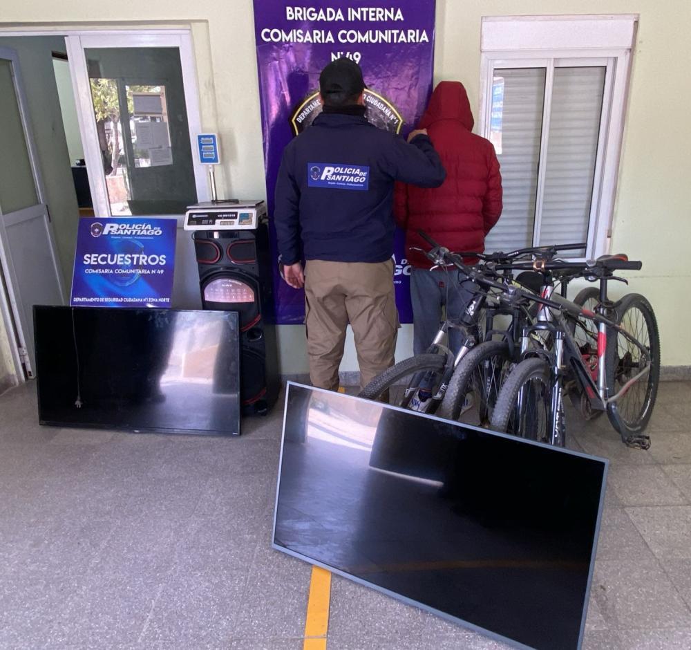 Posteriormente, las tareas investigativas permitieron vincular a uno de los detenidos con varios robos ocurridos en el barrio Lomas del Golf. Con esa información, los efectivos desplegaron nuevas diligencias en diferentes sectores de la ciudad, logrando recuperar tres bicicletas rodado 29 de distintas marcas y colores, además de un televisor Noblex de 50 pulgadas y un televisor LG de 49 pulgadas.