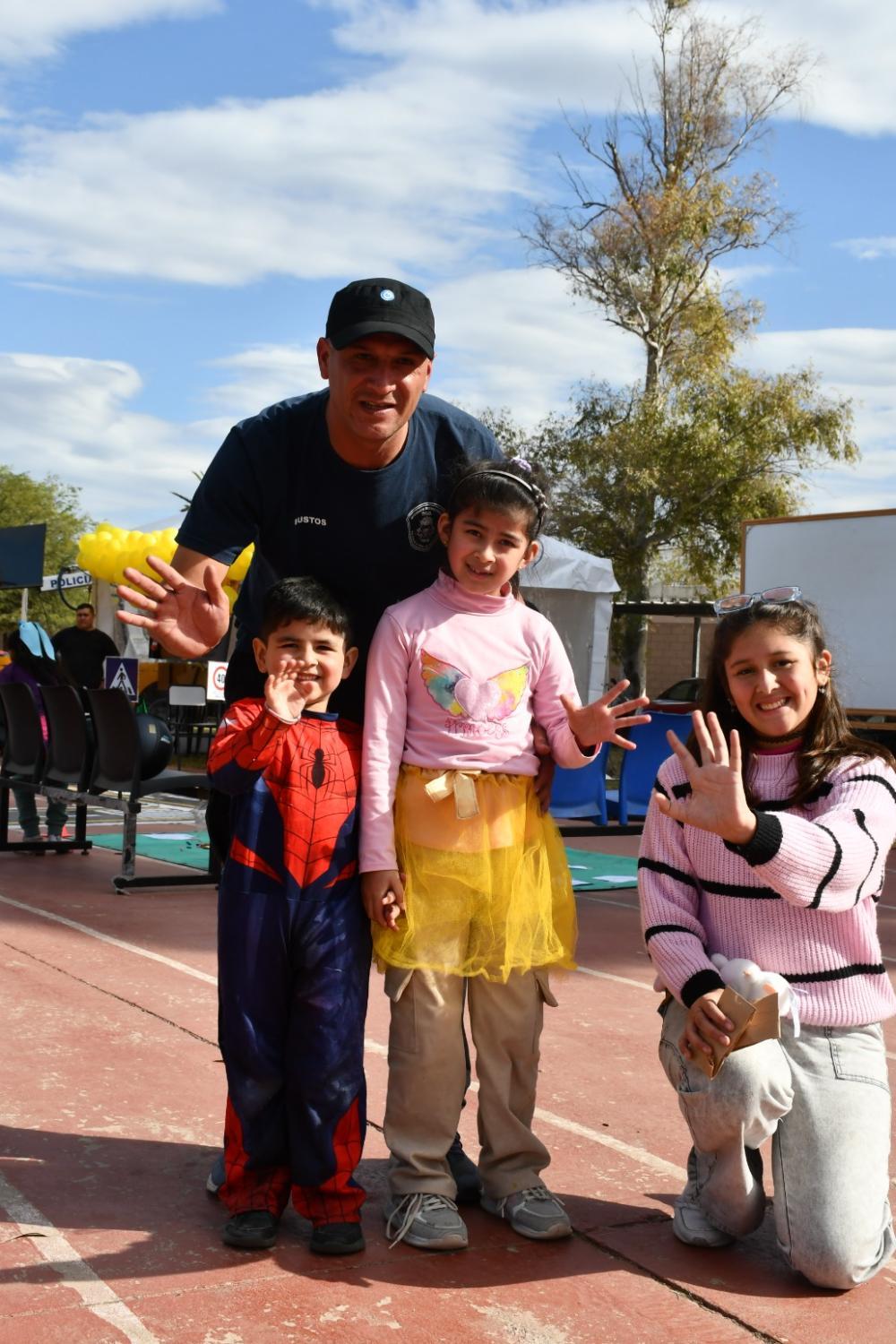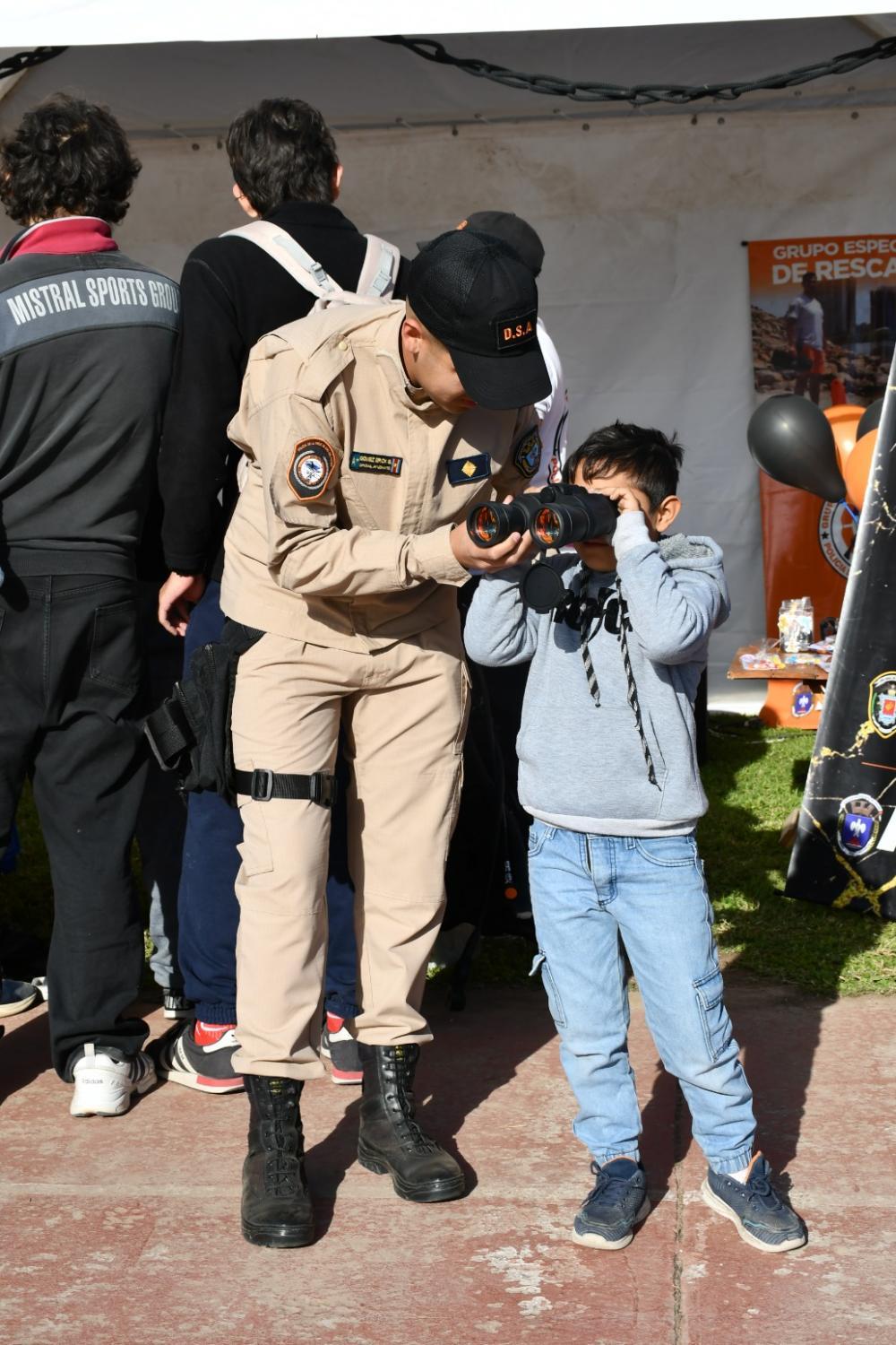La propuesta incluyó stands informativos, juegos, música en vivo y shows para todas las edades, generando un ambiente de camaradería y aprendizaje. Los más pequeños participaron de actividades sobre primeros auxilios, demostraciones de destreza de los canes de la División K9 y juegos vinculados a la seguridad vial, mientras las distintas dependencias policiales desplegaron propuestas para toda la familia.