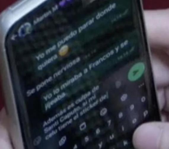 "Además, es culpa de Santi Caputo. Si mi celular tiene el sticker de...", dejando la frase incompleta pero sugiriendo un grado de frustración e ironía hacia el entorno presidencial.