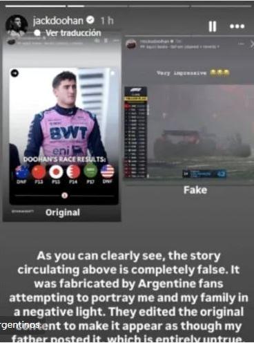 En mayo pasado, Jack Doohan quien luego fue reemplazado por Colapinto en la academia denunció haber recibido amenazas contra su familia por una falsa publicación que circuló en redes. Inicialmente, Doohan acusó directamente a fanáticos argentinos, aunque luego rectificó parcialmente y apuntó contra medios locales por haber difundido desinformación.