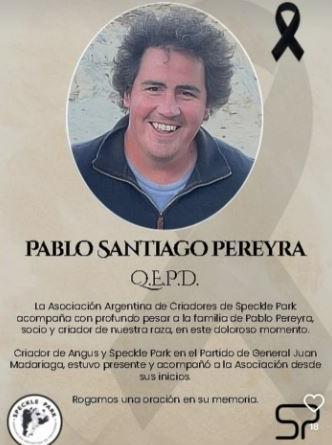 Pereyra no era un desconocido en los círculos del agro: formaba parte de la Asociación Argentina de Criadores de Speckle Park, entidad que lo despidió públicamente con un mensaje en redes sociales. Según trascendió, además, el productor sería primo de un actual asesor del Gobierno, lo que añade una dimensión política al hecho.