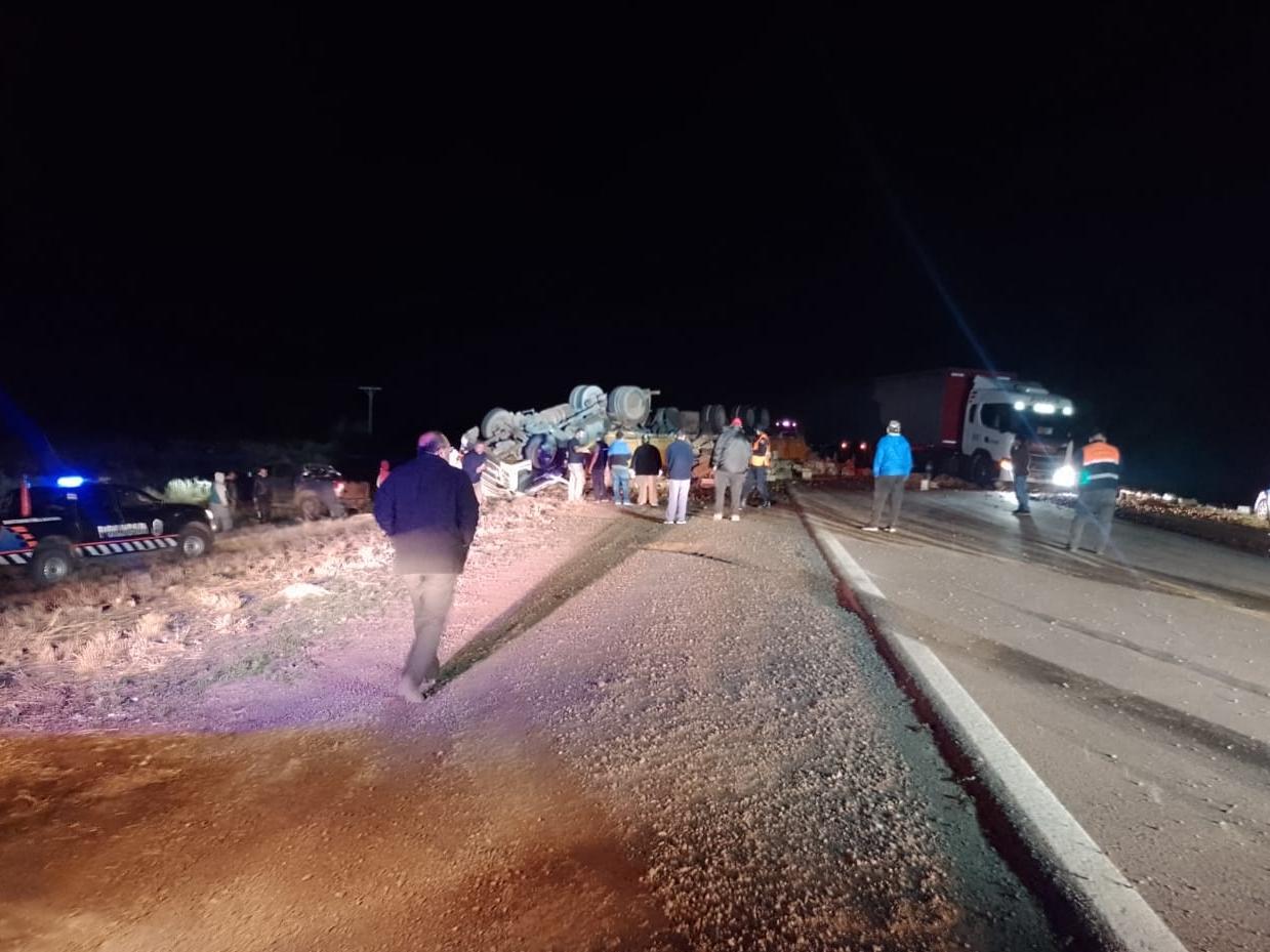 Al arribar, los efectivos constataron una escena dramática. Un camión marca Volvo, modelo 440, color blanco, perteneciente a la empresa Transporte Nacho, dedicado a cargas generales, se encontraba volcado sobre la calzada en sentido sur-norte. El vehículo había quedado con su frente orientado hacia el noreste y en su interior, atrapado entre los hierros de la cabina, yacía el conductor, un hombre que no presentaba signos vitales.